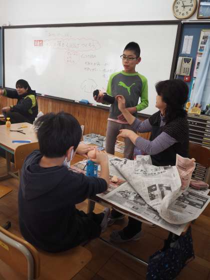 巨匠展にむけての作品づくりを行っています。テーマは「みらいのじぶん」です。材料,色,かたち,すべてじぶんで考えて作ります。卓球選手や車しょうさんなど,将来の夢をかたちにしていきました。出来上がりが楽しみです!