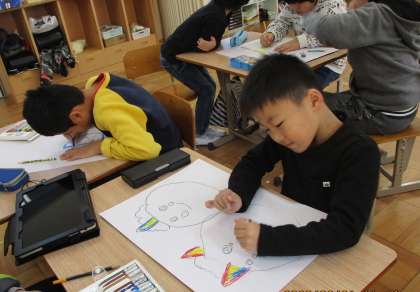 交流学習に向けて,準備を進めています。はじめとおわりの言葉やゲームのルール説明など,自分たちで考えています。