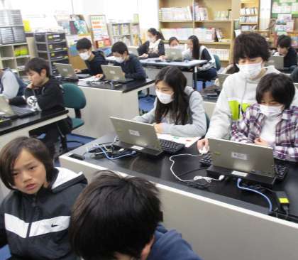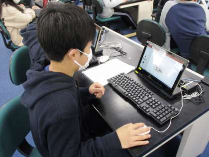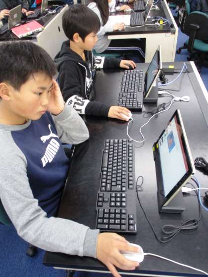 外国について調べたことを,明日の発表に向けてプレゼン用ソフトを使ってまとめています。