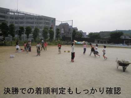 決勝(ゴール)係は,着順を間違わないようにカードをわたす練習です。