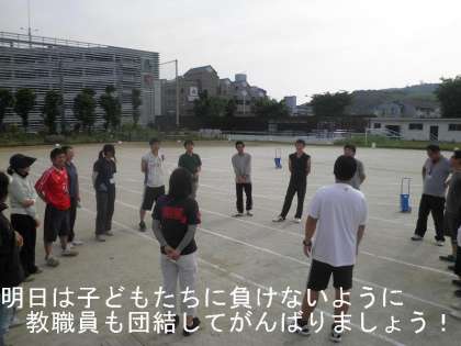 最後は,全教職員が輪になって,明日は,子どもたちに負けないようにがんばろう!そして,素晴らしい運動会を演出してやろう!と確認しました。