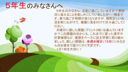 15日(水)の登校日は中止です。