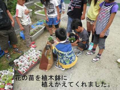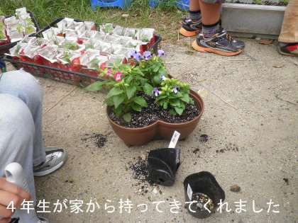 4年生の男の子が,家からきれいな花の苗と植木鉢を持ってきてくれました。