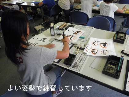 宿題を見ていただいたあと,お得意の習字を教えていただきました。学校の授業で始めたばかりの3年生も一生懸命練習していました。そして,子どもたちが納得のいくように上手にアドバイスをしてくださっていました。