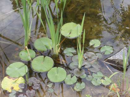 ここ数日の雨でビオトープの水生植物が生き生きしてきました。「がま」「菖蒲」「せり」「スイレン」等々の一段と大きくなっています。