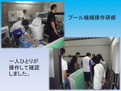 昨日放課後に,プール機械操作研修をしました。