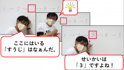 □の中になんのすうじがはいるかかんがえてみましょう。