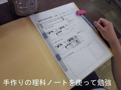 「植物の成長と肥料と日光」のかかわりを観察を通して学んでいます。専科の先生の手作りに理科ノートに観察したことをまとめて発表します。