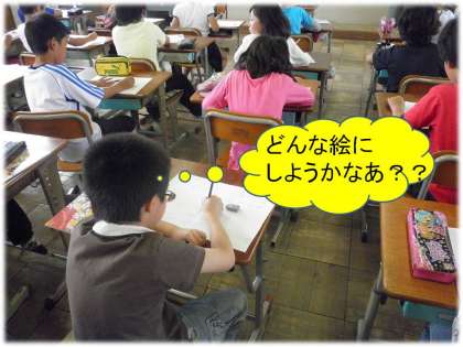 今日は,下絵描きをしました。テーマは自由!子どもたち任せですが,いろんなアイデアを出して黙々と描いていました。