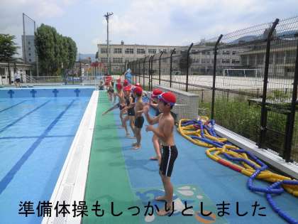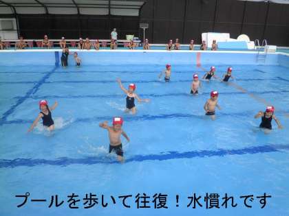 今日は水深が50センチ程度で浅かったので,だれ一人水を怖がる子もなく楽しみました。今週は,水慣れ期間で水遊びが中心ですが,来週からは,水泳学習に切り替えて泳ぎの練習に入っていきます。