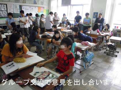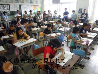 支部10校の先生に,本校の5年生の頑張りを観てもらいました。教室に入りきれないほどの先生方に見られ,子どもたちは緊張気味でしたが,最後まで集中して取り組んでいました。