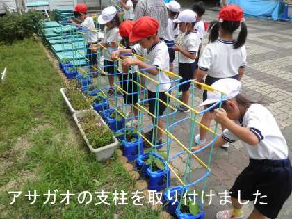 1年のページ アサガオに支柱を取り付けました