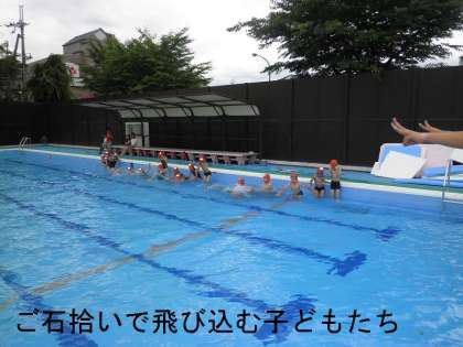 まだまだ水慣れ期間ですが,子どもたちは元気に飛び込み,ご石ひらいなどをして楽しみました。