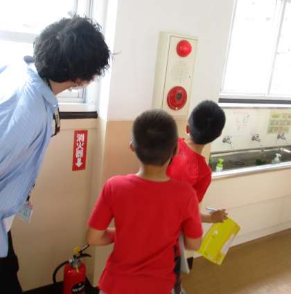 学校にある消防設備や,火事が起きた時の対策について学習しています。