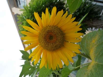 中庭にとっても大きくて元気いっぱいのヒマワリが咲いています。