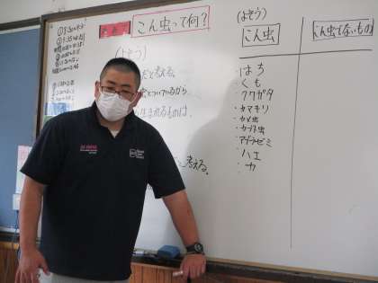 「昆虫て何だろう」という先生の問掛けの元,子どもたちは「卵から生まれるものは昆虫!」「○○虫ってつくものは昆虫!」といろいろな意見を出しながら考えていました。