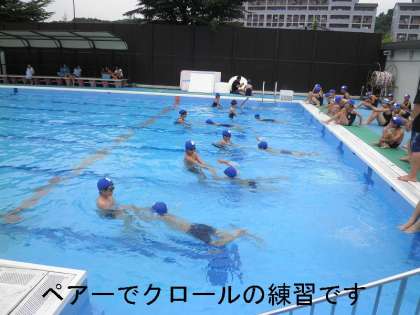 水慣れだけでなく,ペアーになって泳法の練習もしっかり取り組みました。