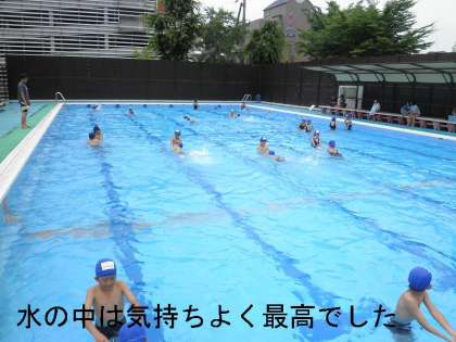 先週の金曜日以来,2回目のプール学習です。先週は曇っていて水温も低く寒くて,途中であがったのですが,今日は,最高のプール日和になりました。