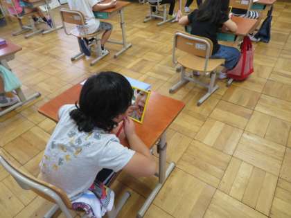 1年生は,「自分の歯について知る。」というめあてで,歯みがき指導を行いました。どんな状態が「虫歯」なのかや「虫歯になりかけの歯」,歯ぐきが弱っている状態がどのようなものなのかを知り,鏡を使って自分の口の中を点検しました。