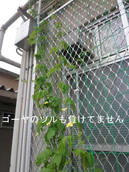 ツルも早くも2階まで届きました。これからさらに葉が大きくなって日よけになってくれることでしょう。