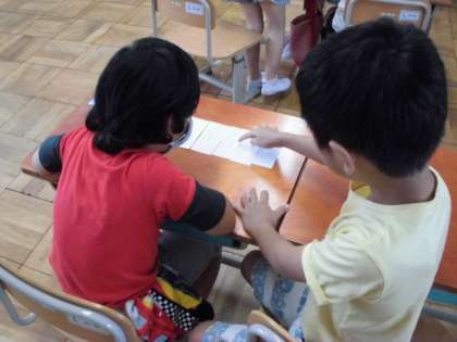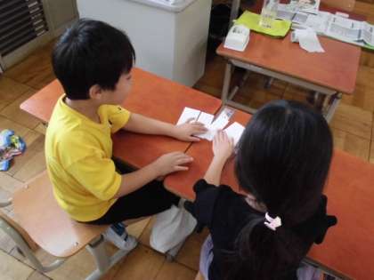 問いの文と答えの文について学習しました。カードを使って上手に文章を並びかえることができました。