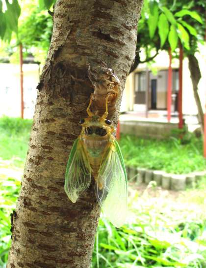 セミの羽化したばかりの姿を見ることができました。もうすぐ,夏が到来です。