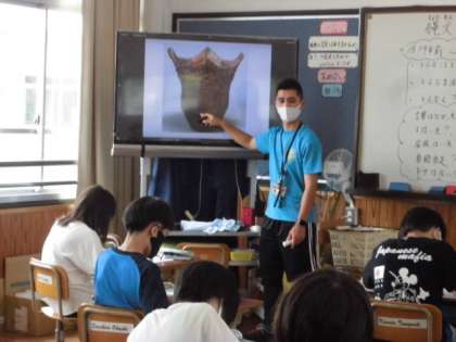 縄文時代の人々の生活や、使っていた道具について学習をしました。昔の生活に興味をもって真剣に聞くことができました。