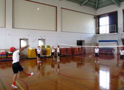 屋外スポーツはキックベース,ラケットはバドミントン,書道は落款印作りをしました。