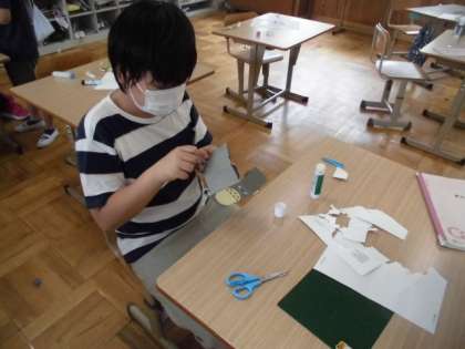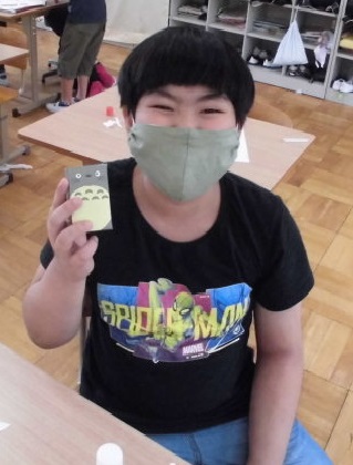 みんなでトトロを作りました。しっかり折り目をつけたり、きれいにのりづけをしたり、細かい作業も丁寧にすることができました。かわいいトトロができましたね。