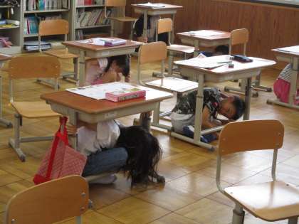 地震を想定した避難訓練を行いました。建物が倒壊のおそれがあるため,避難経路もいつもとは異なりました。例年,休日参観の際に,引き渡し訓練も行っていましたが,今年度は行えなかったため,夏休みが始まる前に実施いたしました。