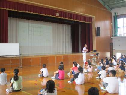 始業式では,校長先生より「自分や友だちを大切にできる。」「すすんであいさつができる。」「最後まで 根気強く あきらめず取り組むことができる」「規則正しい生活を送ることができる」ことを実践してより良い学校生活を送ってほしい。というお話がありました。