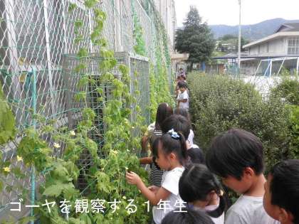 「ゴーヤ」は,結実しているものもあり,「これ食べられる?」などと子どもどうしで話がはずんでいました。