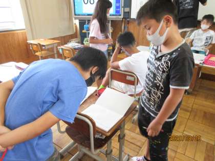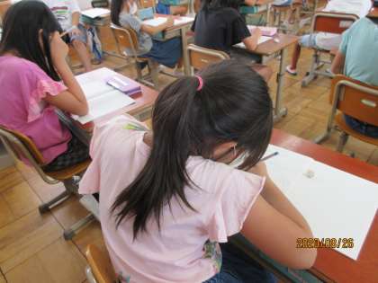夏休み前から学習をしている「わり算の筆算」のテストに向けて復習をしています。今日は,みんなで作った問題を解き合ったり答えを確かめ合ったりして,しっかりと復習することができました。