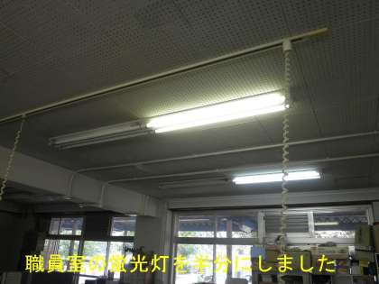 学校では,エアコンは欠かせませんが,その他で思い切った節電をしています。職員室など蛍光灯を半分にしたり,時にはすべて消したりして節電に努めています。コピー機やパソコンなどの電源も使用時以外はOFFにしています。