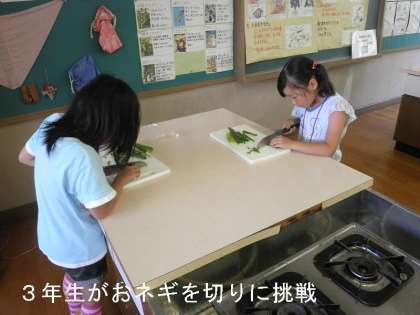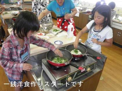暑い中でしたが,地域女性会の方のお世話で,家庭科室で楽しく「一銭洋食」を作り,汗をかきながらもおいしくいただきました。