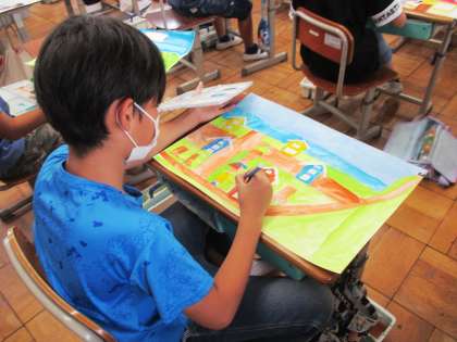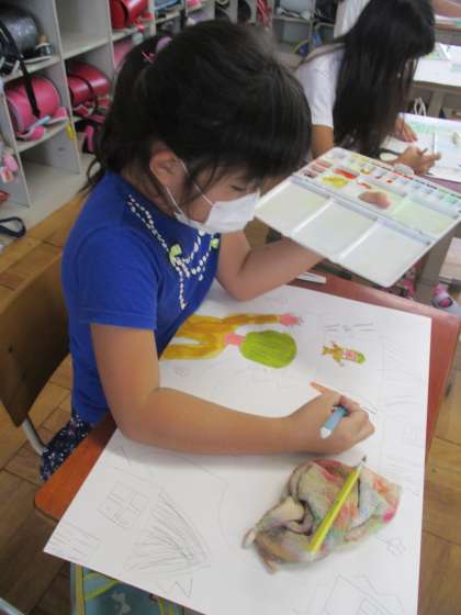 お話の絵に彩色をしています。それぞれ工夫をこらしながら取り組んでいます。