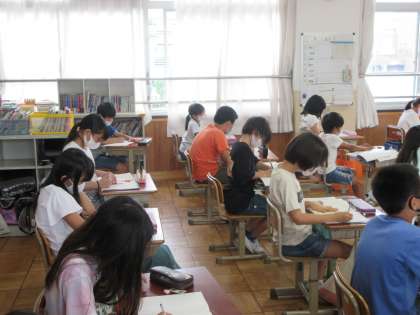 4年生は国語で「一つの花」のお話を学習しています。「プラットホームのはし」とは?ということを友だちと考えてイラストに表していました。それぞれの捉え方があることに気づいた子どもたちでした。