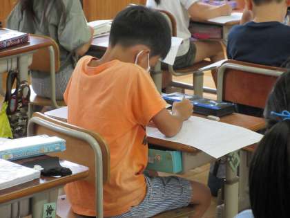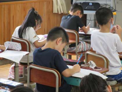 3年生は,読書感想文の清書をしていました。静かに集中して,姿勢よく学習に取り組んでいました。
