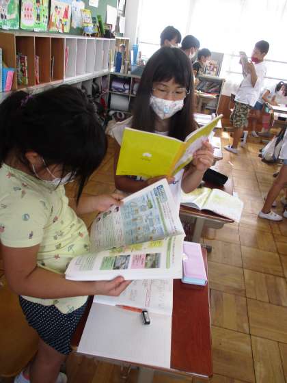 資料を参考に調べたことを話し合い,学習しました。