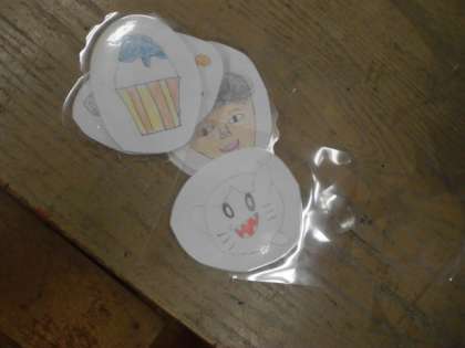 今日は画用紙に書いた絵をラミネートしました。きれいな作品ができましたね。