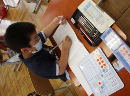 20までのたし算やひき算の学習をしています。ブロックを使って考えることで数量もしっかり理解できるようになってきました。
