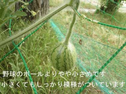 今日は休日なので,野菜畑に水やりに来ると,なんとスイカが一回り大きくなっていました。先週はピンポン玉程度だったのですが,今朝は野球のボールまではいきませんが,それなりに大きくなっているスイカがいくつも見られました。うれしいことです。