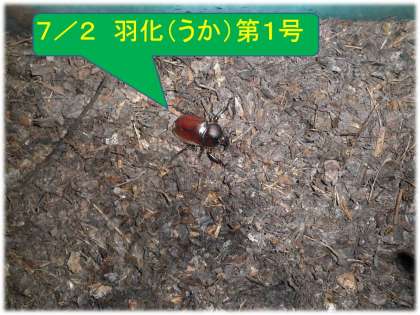 7/2にe-naプロジェクトで飼育しているカブトムシが羽化したことをお知らせしましたが,今日の夕方になってから,どんどん羽化しはじめています。現在4匹(オス1匹メス3匹)かえっています。