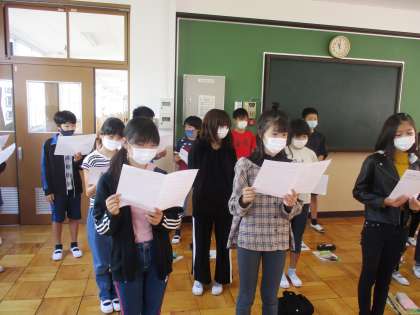 他校との交流に向けて「U&I」の練習をしています。きれいな歌声が響いています。