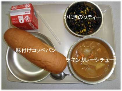 「味付けコッペパン」「チキンカレーシチュー」そして「ひじきのソティー」でした。