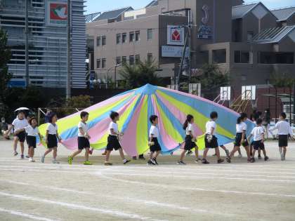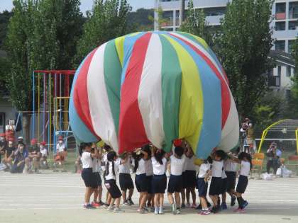 ドラえもんの音楽に合わせたかわいいダンスの後は,息の合ったバルーンの演技でした。みんなの気持ちがひとつになり,素敵な演技になりましたね。