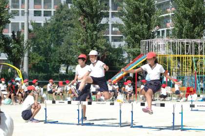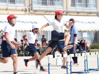 4年生の時,そして今年の体育科で学習した「ハードル走」。「飛び越える」のではなく,「またぎ越す」ことを4年生の時以上に意識しました。抜き足にもこだわって学習してきました。「さすが,6年生」と思わせるようなハードリングでした。