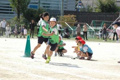 ちょっと緊張している様子でしたが,2・3年生のお兄さんやお姉さんがやさしくバトンパスや走り方を教えてくれたので,自信をもって走れるようになりました。