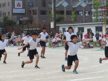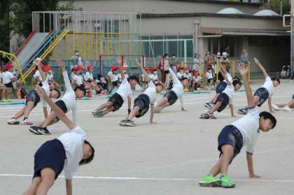 これまで行われてきた組体操の一人技と流行りの「縄跳びダンス」を組み合わせました。これまででいちばん,全員の息が合っていました。
