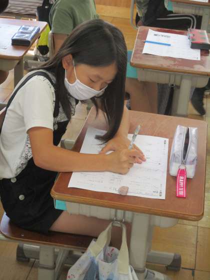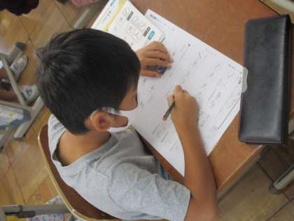 はらいやおれ,はねに気をつけて丁寧に硬筆の学習を行いました。